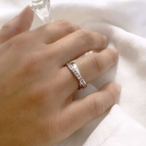 La bague pour femme, en argent 925, séduit par sa ligne délicate sublimée d’oxydes de zirconium étincelants, apportant une touche de lumière et de raffinement à chaque mouvement.