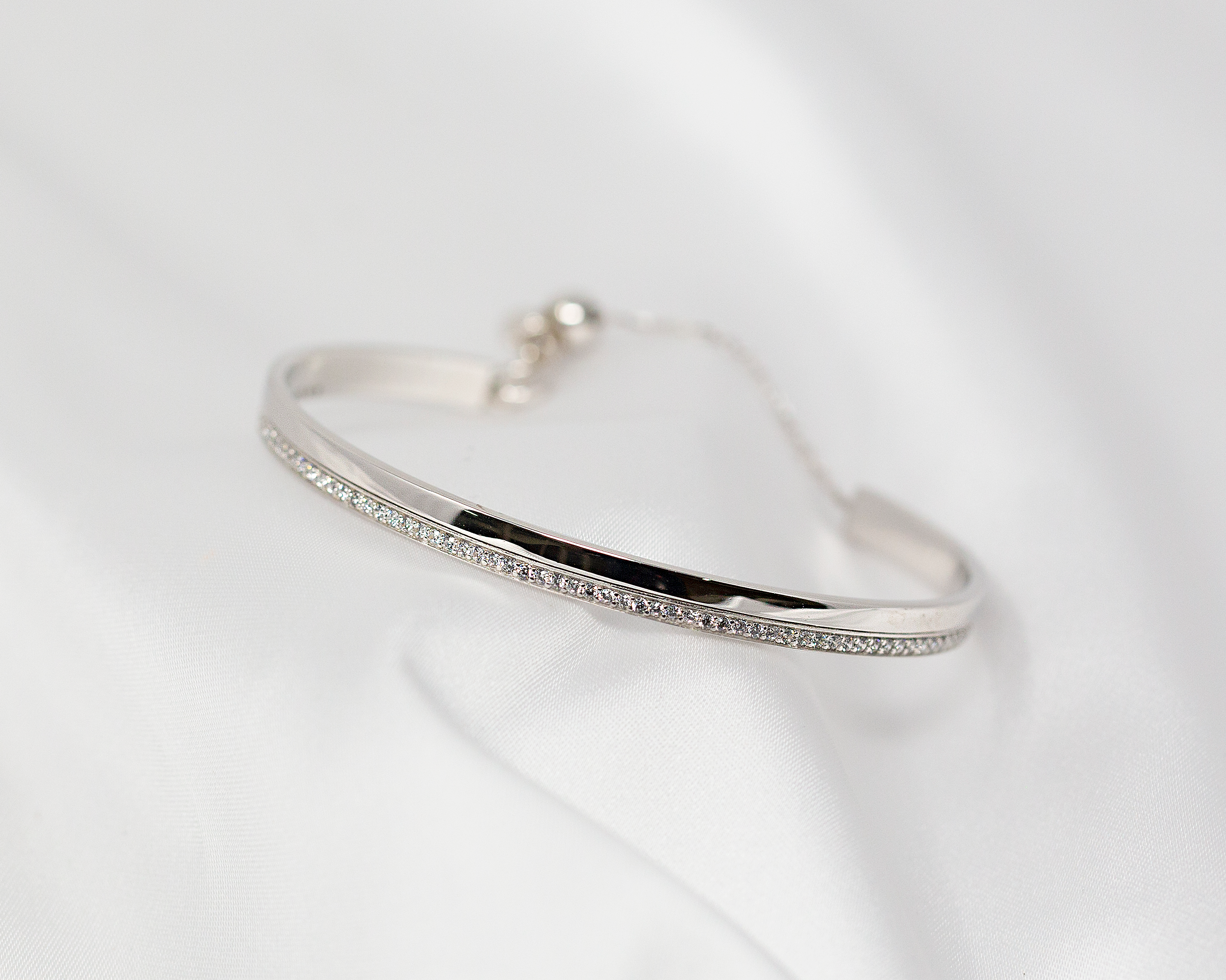 Ce jonc ouvrant Déesse en argent séduit par son design sobre, et pavé lié en zirconium Il bénéficie d’une finition lisse qui lui confère un aspect moderne. Ce modèle complète à merveille tous les looks féminins : classique, élégant, casual chic.