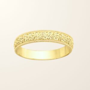La bague Éléonore en or jaune 18 carats séduit par son travail délicat et son effet diamanté, offrant un jeu de lumière raffiné et une touche précieuse au quotidien. Son design finement ouvragé apporte élégance et féminité, tout en restant intemporel.