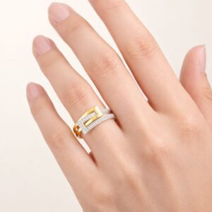 Symbole d’un engagement sincère et moderne, cette bague Anaïs en or jaune et or blanc 9 carats séduit par son design graphique et harmonieux. L’entrelacement des deux ors incarne l’union de deux personnalités, tandis que la ligne délicatement sertie de diamants naturels apporte une touche d’éclat et de raffinement.