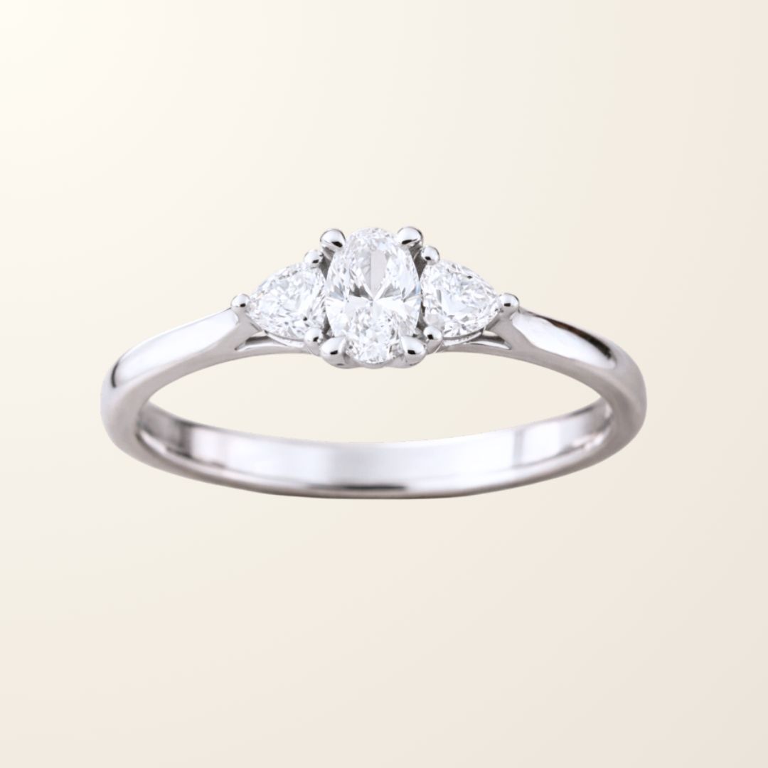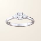 Au centre, un diamant synthétique de 0,20 carat capte la lumière et attire tous les regards. Il est sublimé par deux diamants latéraux qui renforcent sa brillance et apportent équilibre à la monture.