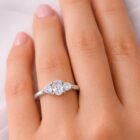 Délicate et lumineuse, la bague Diane célèbre l’engagement avec raffinement. Son design harmonieux associe la chaleur de l’or blanc 9 carats à l’éclat intense des diamants de synthèse, pour un bijou à la fois moderne et intemporel.