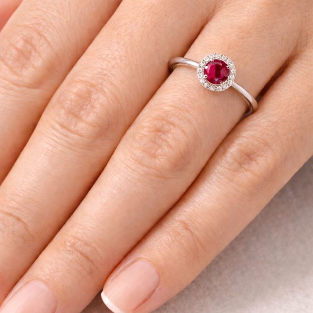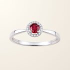 Son Rubis central, d’une teinte profonde et lumineuse, incarne l’amour sincère et l’harmonie du couple. Il est délicatement mis en valeur par un entourage d’oxydes de zirconium, apportant éclat et raffinement à l’ensemble.