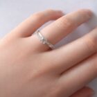 Sa pierre centrale éclatante est mise en valeur par de délicats oxydes de zirconium sertis le long de l’anneau, apportant lumière et raffinement à chaque mouvement.