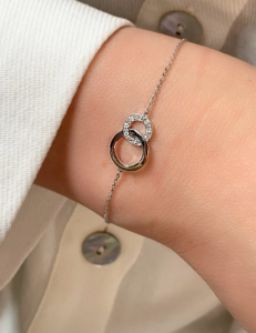 Le bracelet Forever en or fait penser à une fusion, un lien entre deux personnes. Autour du poignet, les cercles semblent flotter sur sa chaîne, laissant traverser la lumière entre les lignes. Accentué par un cercle de diamants, ce modèle devient totalement irrésistible dans toutes les situations.