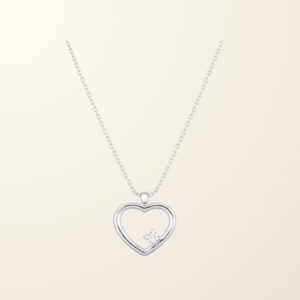 Romantique et délicat, le collier Douce incarne la tendresse à l’état pur. Son pendentif en forme de cœur, réalisé en or blanc 9 carats, est sublimé par un oxyde scintillant qui capte la lumière avec finesse.