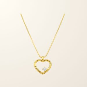Romantique et délicat, le collier Douce incarne la tendresse à l’état pur. Son pendentif en forme de cœur, réalisé en or jaune 9 carats, est sublimé par un oxyde scintillant qui capte la lumière avec finesse.