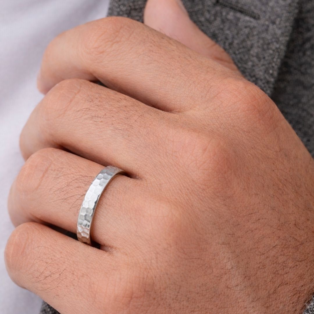 Authentique et pleine de caractère, la bague Timéo en or blanc 18 carats se distingue par sa finition martelée, qui capte la lumière avec subtilité et révèle un relief unique à chaque pièce. Son aspect texturé apporte une touche contemporaine tout en conservant une élégance intemporelle.