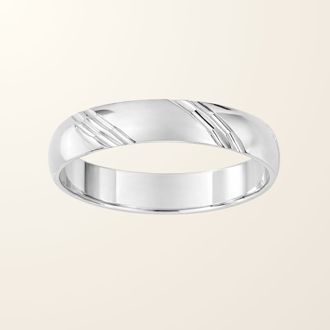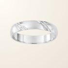 Avec son épaisseur de 3,5 mm, elle présente un équilibre parfait entre finesse et présence au doigt. Son motif rainuré apporte une touche de caractère et de modernité, tout en conservant une ligne épurée et raffinée.