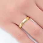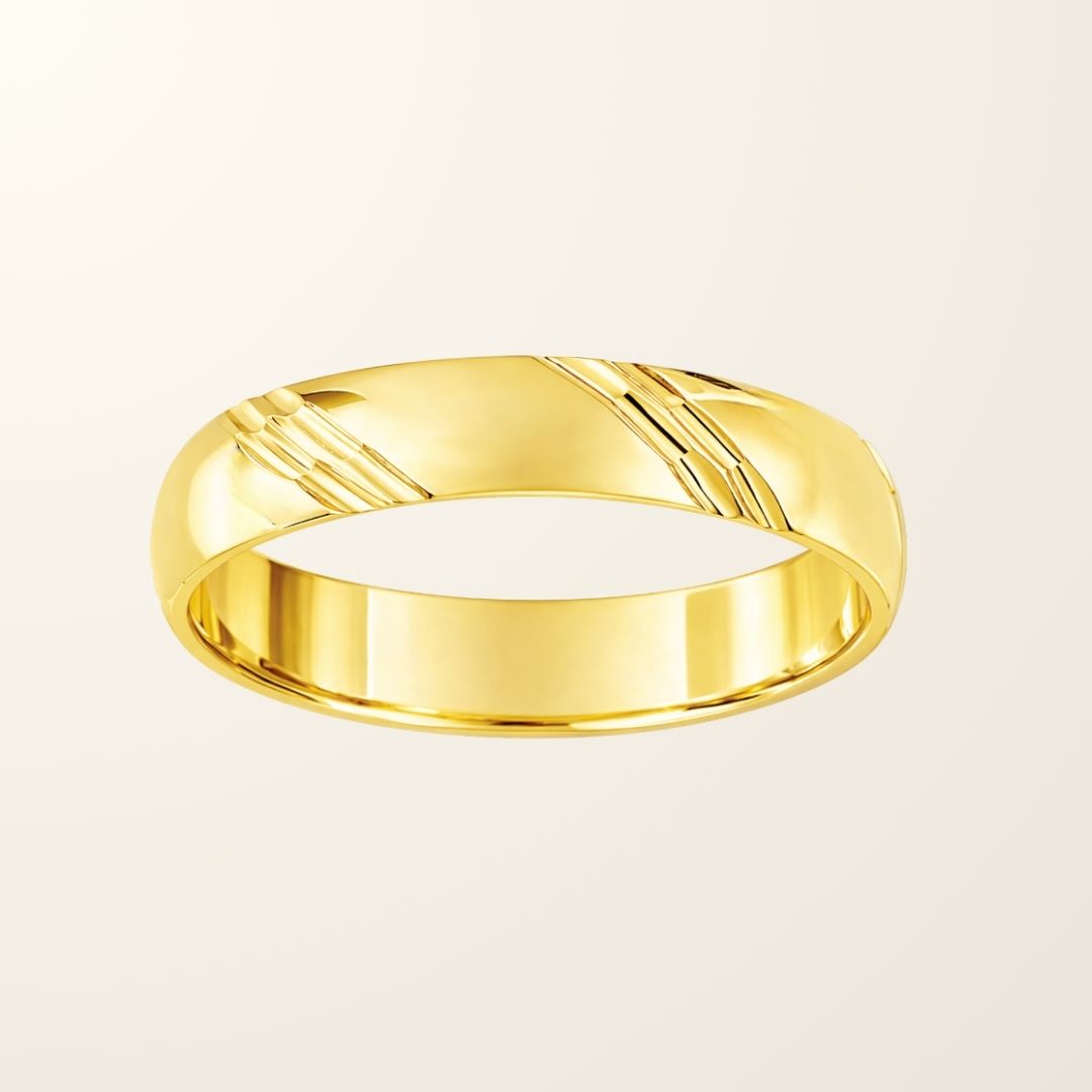 Avec son épaisseur de 3,5 mm, elle présente un équilibre parfait entre finesse et présence au doigt. Son motif rainuré apporte une touche de caractère et de modernité, tout en conservant une ligne épurée et raffinée.